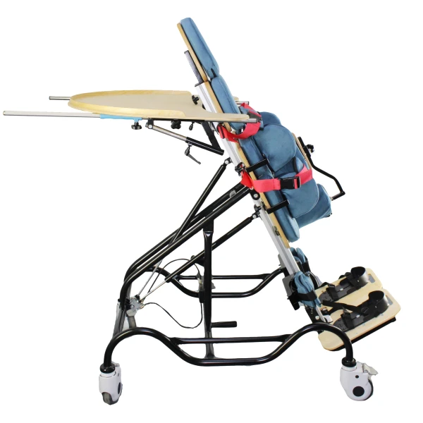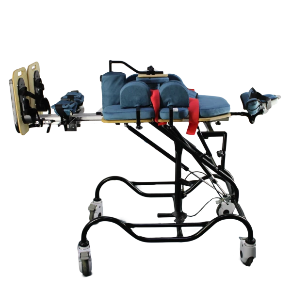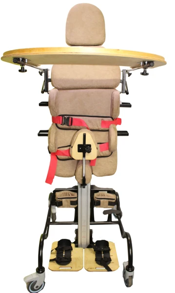 Базовый комплект включает многофункциональный вертикализатор с металлической рамой и с поворотным ложем со съемными модулями, раздельными подножками со стоподержателями, абдуктором, съемным столиком, системой креплений и боковыми упорами. Пневматический привод.