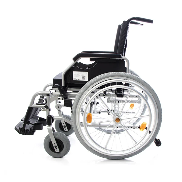 Инвалидная кресло-коляска Omega Luxe 350 для управления одной рукой – универсальная кресло-коляска с ручным приводом, складной рамой и регулировками высоты спинки и подножек для комфорта пользователя.