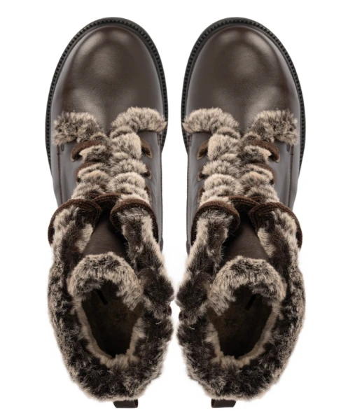 Женские ортопедические ботинки Lilia от немецкого бренда Göekken — демисезонная модель в темно-коричневом цвете, украшенная искусственным мехом . Обувь изготавливают из натуральной итальянской кожи ручной растяжки, в самых широких частях стопы и в области подъема материал получается наиболее мягким и эластичным. Просторная носочная часть не давит на пальцы ног и дает им достаточно пространства.