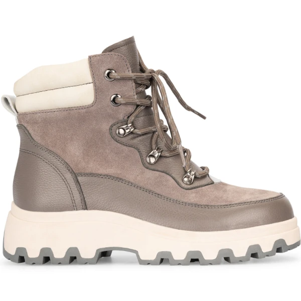 Ботинки изготовлены из натуральной кожи с утепленной подкладкой. Снабжены съемными ортопедическими стельками, с выкладкой продольного и поперечного, разгружают и поддерживают стопу. Клиновидная подошва повышенной износоустойчивости поддерживает своды стопы и отлично амортизирует. Рельефный протектор подошвы препятствует скольжению. Цвет: серый, размеры: 36-41. Высота голенища в среднем размере 125 мм. Полнота 11