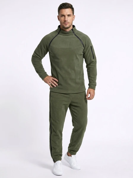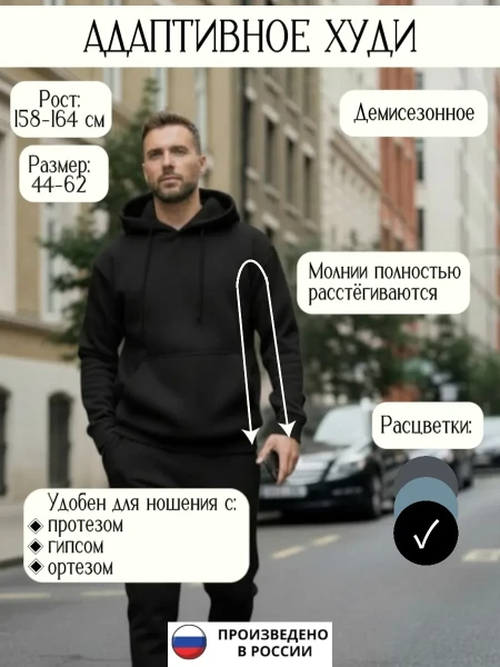 По индивидуальному заказу, цвет и размер определяются пользователем. Изделие может быть дополнено молниями вдоль рукавов и брючин.