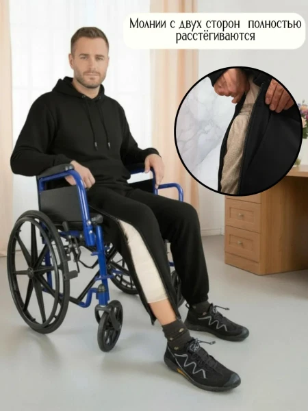 Адаптивные брюки с молнией на ноге, для протеза, для гипса,взрослые,демисезонные,цвет черный,рост 182-188