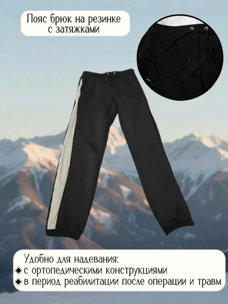 Адаптивные демисезонные брюки с молнией на ноге — это одежда для тех, кто восстанавливается после травм, операций или сталкивается с возрастными ограничениями подвижности. Уникальные боковые молнии на штанине позволяют надеть брюки самостоятельно, даже при сниженной моторике, не нужно ждать помощи!Мягкий хлопковый материал согреет на прогулке и не стеснит движений во время лечебной гимнастики.Брюки одинаково удобны в квартире, во дворе, в больнице или санатории.