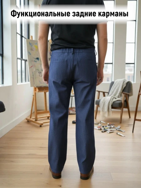 Адаптивные демисезонные мужские джинсы КОС предназначены для использования в период восстановления после травм, хирургических операций и при заболеваниях, сопровождающихся ограничением подвижности нижних конечностей.